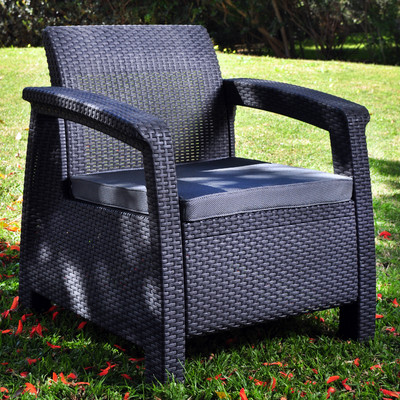 Meble Keter CORFU zostały stworzone z myślą o użytkowaniu na zewnątrz. Dzięki wykorzystaniu wysokiej jakości polipropylenu, zestaw jest odporny na promieniowanie UV, wilgoć oraz zmienne temperatury (od 0°C do 40°C). Nie blaknie na słońcu i nie niszczy się pod wpływem deszczu.