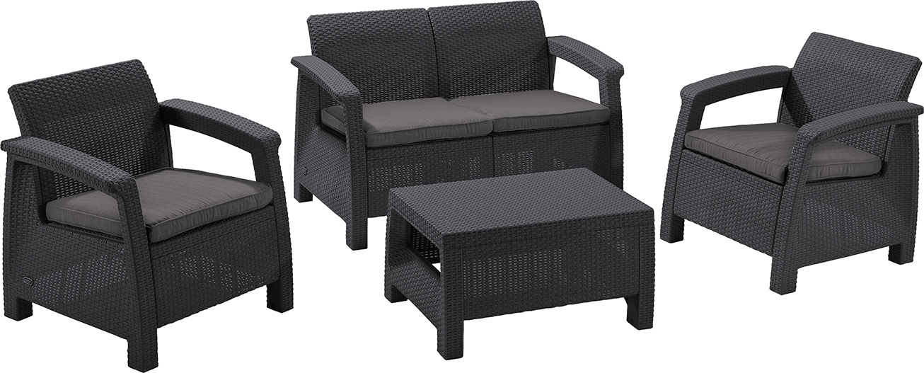 Meble z serii Keter CORFU zachwycają swoim wyglądem. Powierzchnia o strukturze technorattanu została wykonana z wysokiej jakości polipropylenu barwionego w masie, który doskonale imituje naturalny rattan, a przy tym jest znacznie trwalszy. Materiał ten jest odporny na promieniowanie UV, nie blaknie na słońcu, nie chłonie wilgoci i nie wymaga malowania, olejowania ani impregnacji. Dzięki temu meble przez długi czas zachowują elegancki wygląd, nawet przy intensywnym użytkowaniu.
