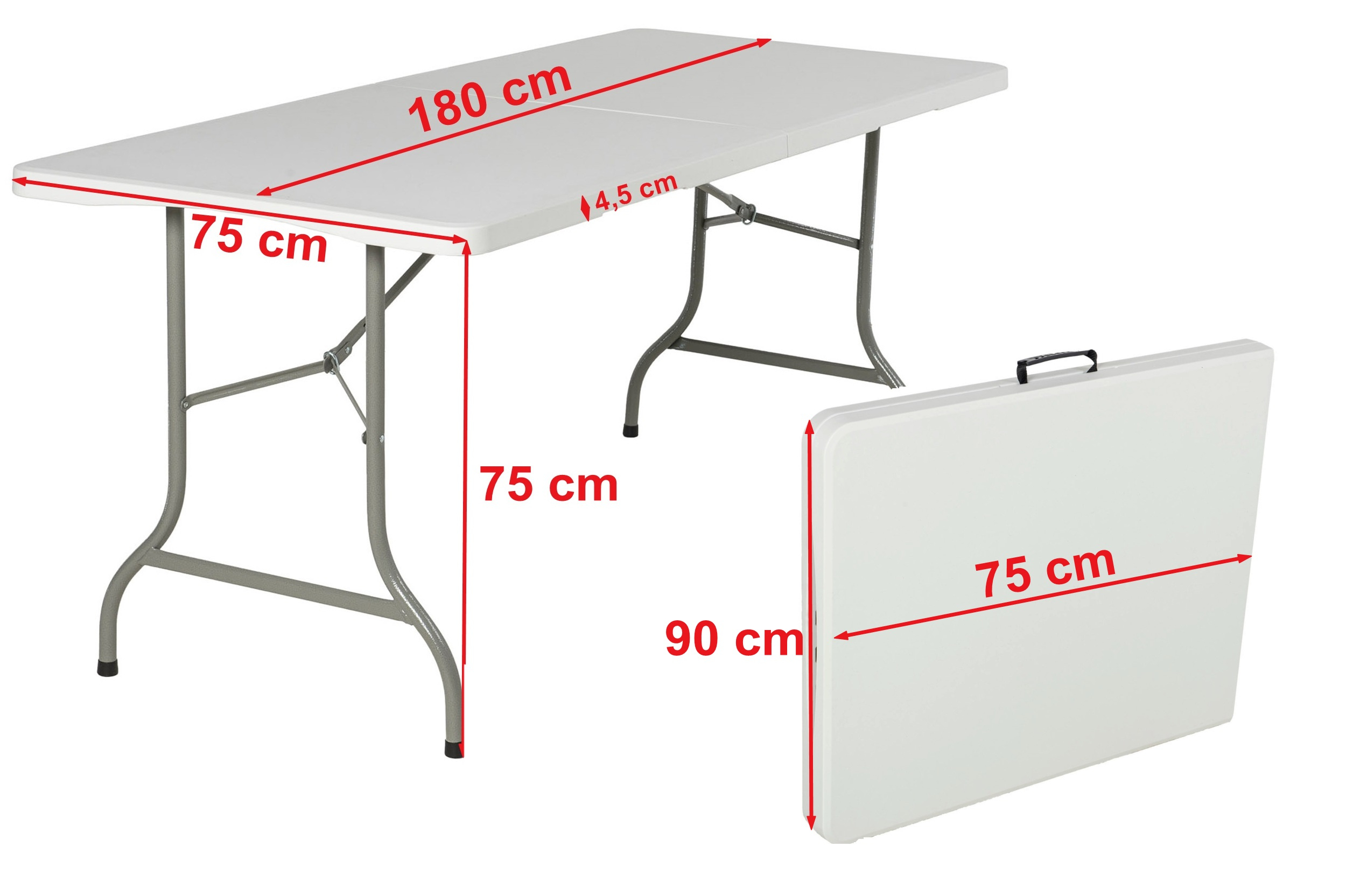 - Składany stół cateringowy 180 x 75 cm z mocnym blatem HDPE w kolorze białym