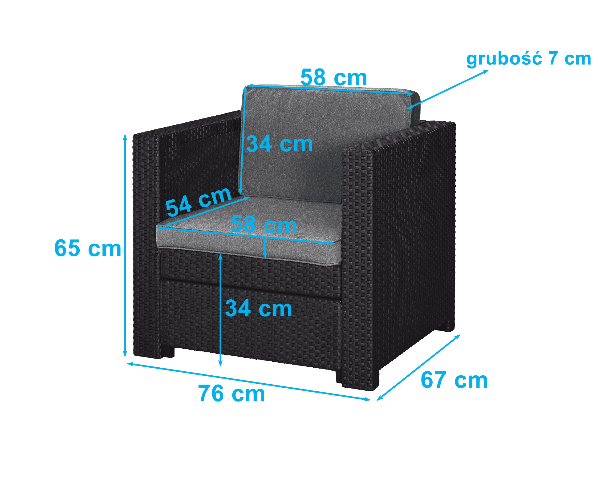 - W zestawie: Poduszka na siedzisko, poduszka na oparcie