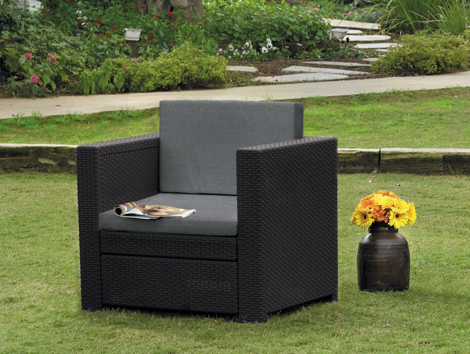 Fotel ogrodowy Keter RIVIERA / PROVENCE grafitowy – komfort, styl i trwałość w Twojej strefie relaksu