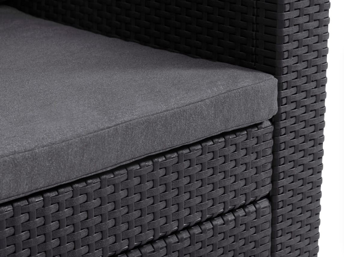 Struktura plecionki dodaje mu lekkości i przytulnego charakteru, a jednocześnie pozwala stworzyć harmonijną i elegancką aranżację w dowolnej przestrzeni outdoorowej. Kolor grafitowy doskonale komponuje się z nowoczesnymi, klasycznymi i skandynawskimi aranżacjami, dzięki czemu fotel łatwo dopasować do pozostałych mebli ogrodowych tej marki.
