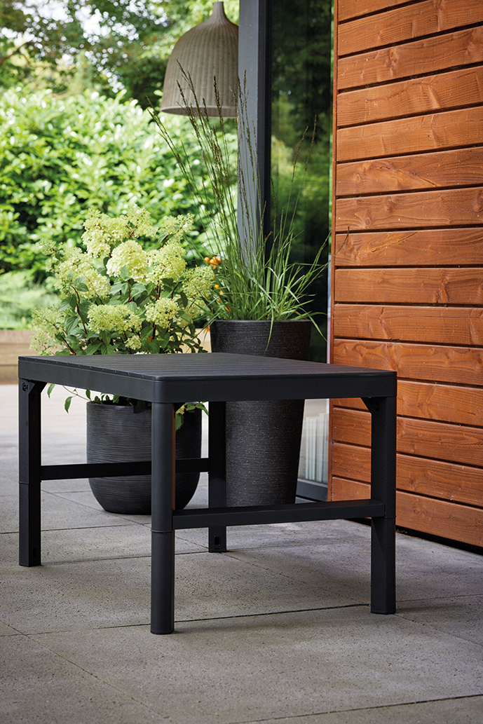Dzięki odporności na promieniowanie UV i wilgoć, stół może być używany zarówno w ogrodzie, na tarasie, balkonie, jak i w pomieszczeniach zamkniętych.
