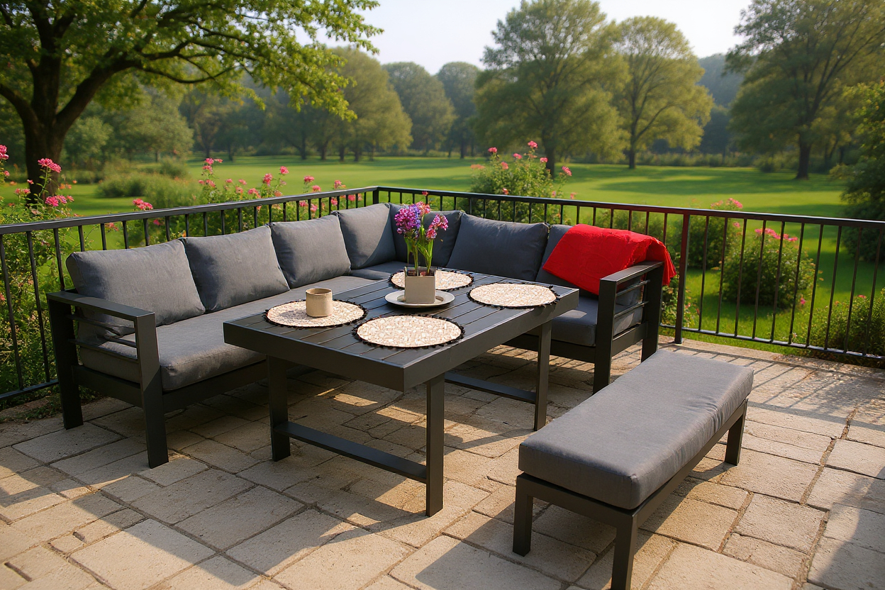 - Ten zestaw mebli ogrodowych łączy w sobie trwałość, stabilność, komfort i funkcjonalność, zapewniając idealne miejsce do relaksu i spotkań towarzyskich w Twoim ogrodzie.
