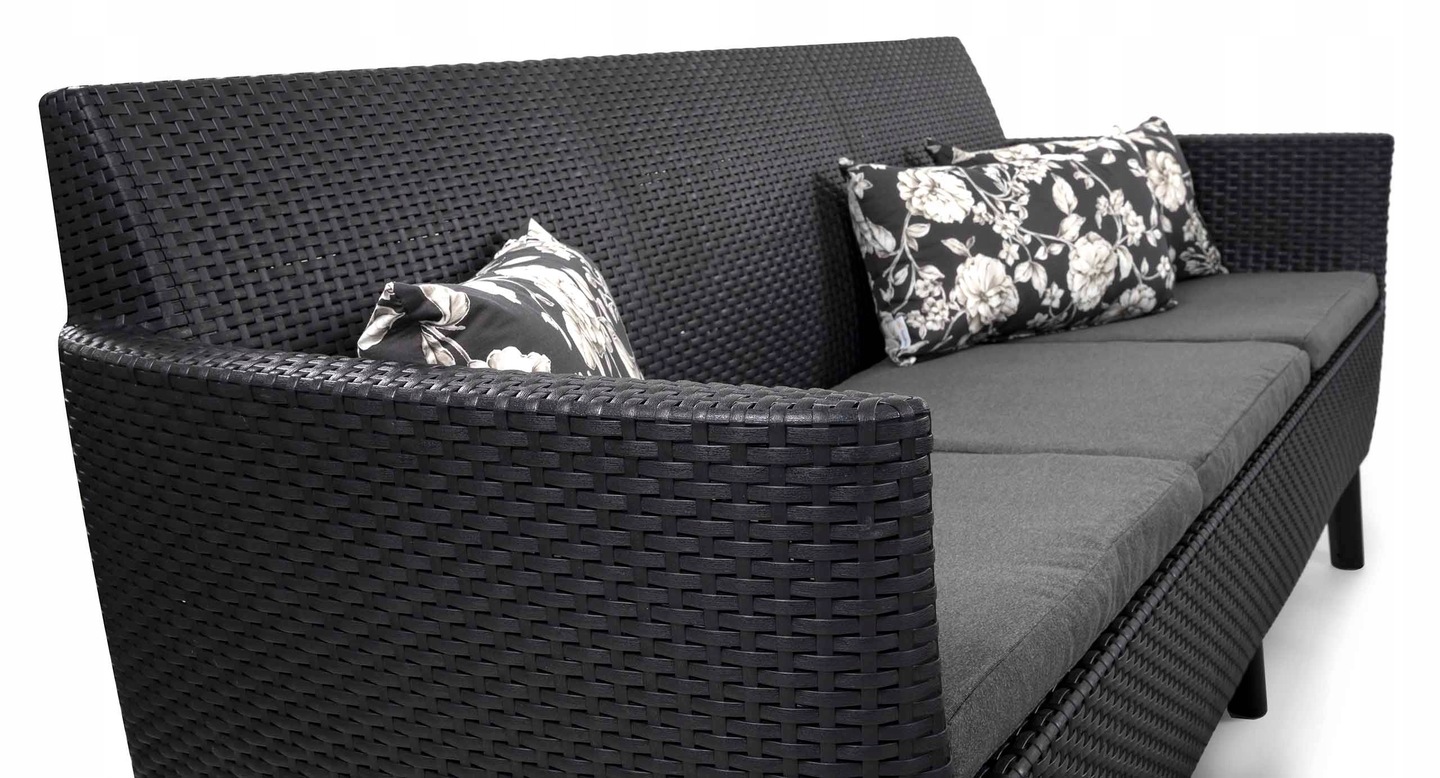 Sofa ogrodowa SALEMO 3-osobowa grafitowa – wygodna kanapa na taras z szarymi poduszkami