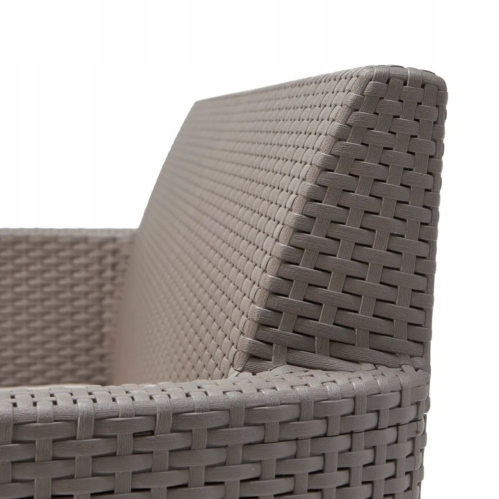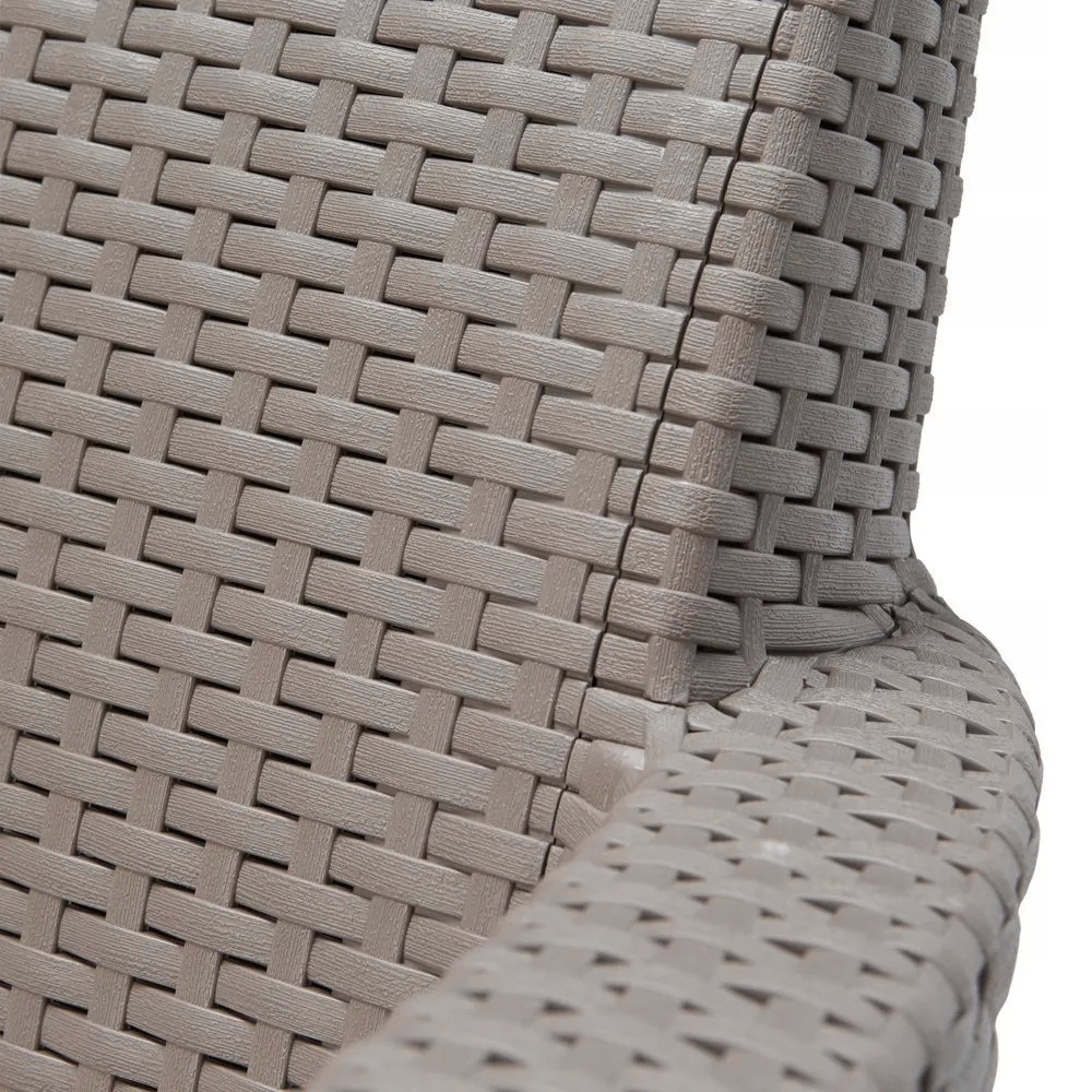 Zestaw Salemo Duo wyróżnia się opływowym, minimalistycznym kształtem oraz powierzchnią imitującą naturalny rattan. Meble w kolorze cappuccino prezentują się wyjątkowo stylowo i pasują do różnych aranżacji ogrodowych i tarasowych. Struktura plecionki nadaje fotelom lekkości i naturalnego charakteru, jednocześnie zapewniając estetyczny wygląd przez wiele sezonów.