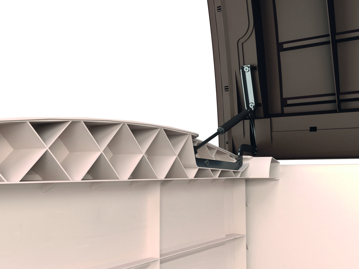 - Łatwy dostęp dzięki szerokim drzwiom i pokrywie z siłownikami.