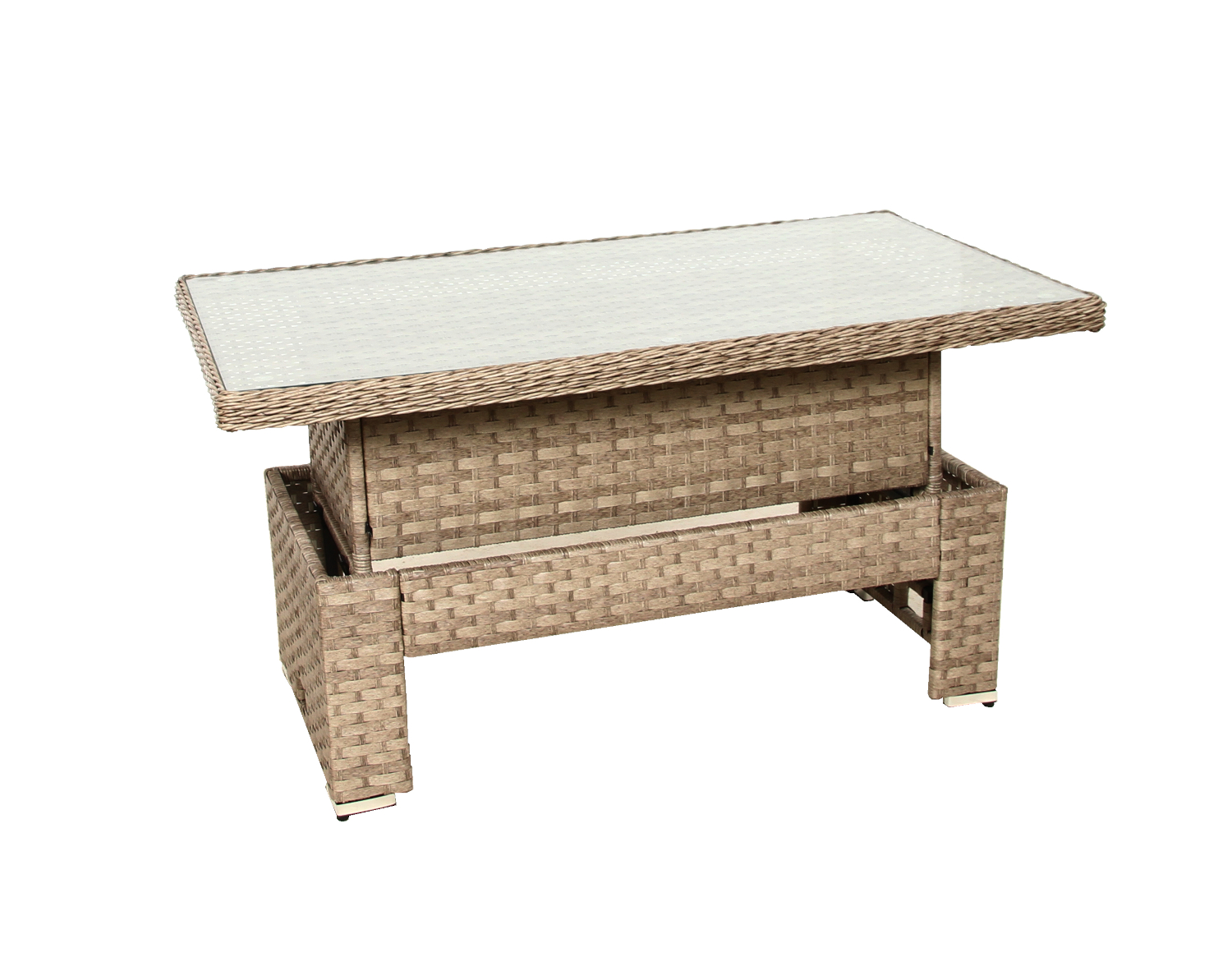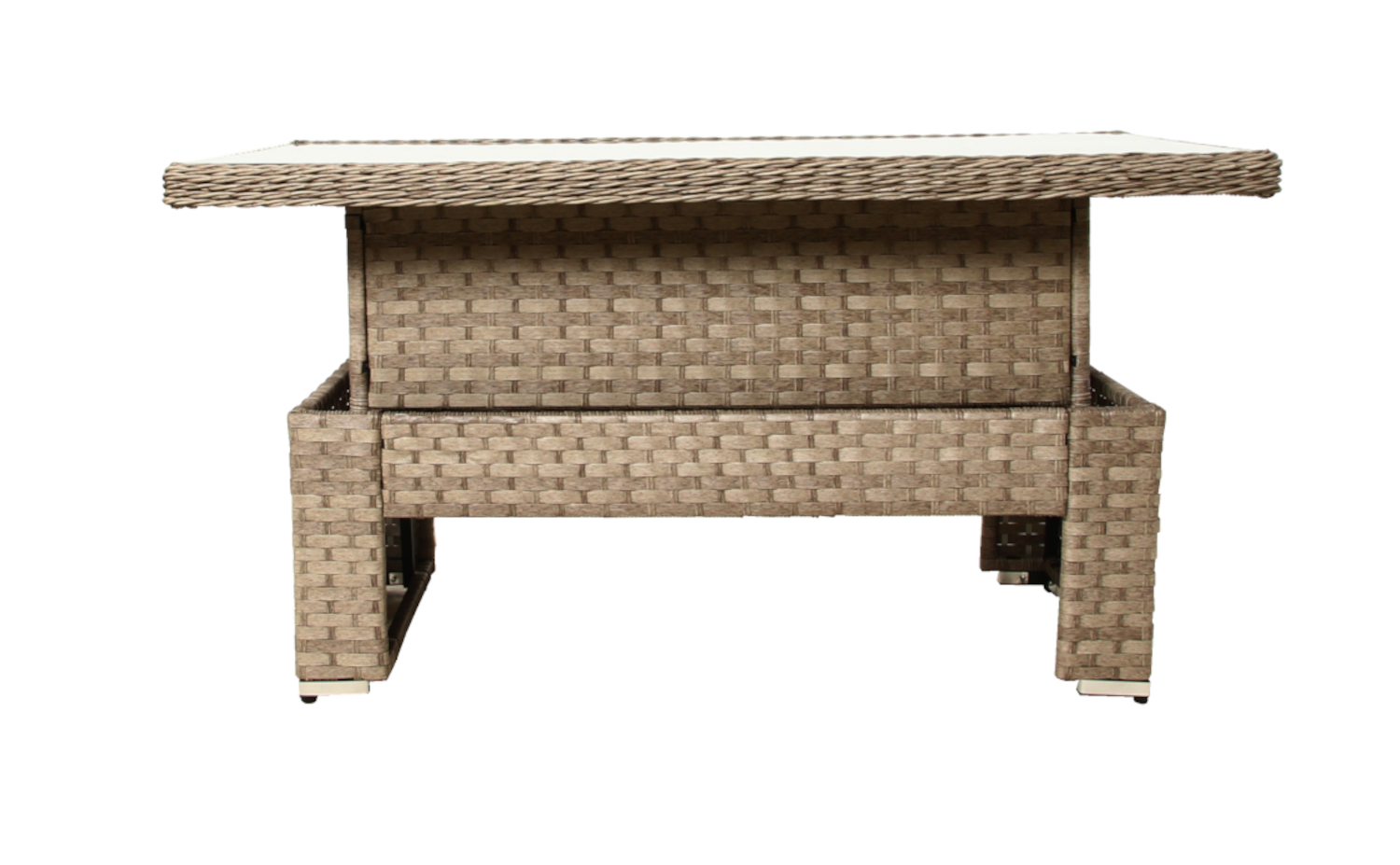 Stół o wysokości 74 cm idealnie sprawdza się do wspólnego spożywania posiłków. Blat wykonany ze szkła hartowanego jest nie tylko elegancki, ale też wyjątkowo odporny na zarysowania i uszkodzenia mechaniczne. Łatwo utrzymać go w czystości, co jest istotne podczas intensywnego użytkowania na świeżym powietrzu.