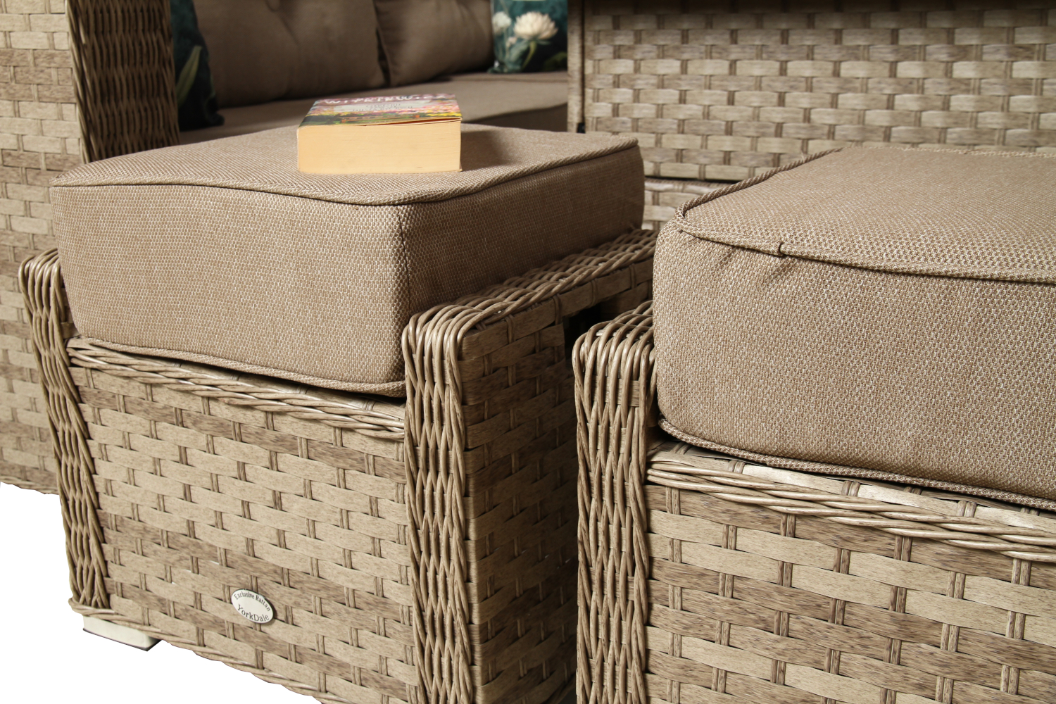 Poduszki w zestawie wykonano z tkaniny Olefin, jednej z najlepszych tkanin stosowanych w meblach ogrodowych.